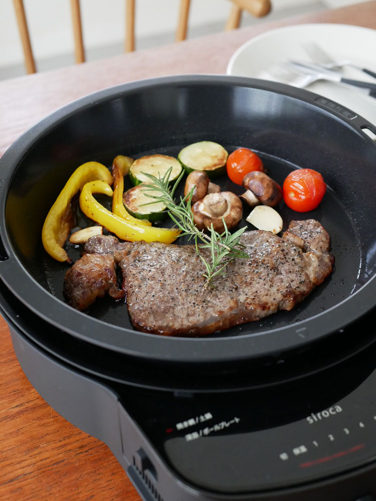 熱が均一に伝わるため、焼きムラを抑え、肉厚なステーキもおいしく焼き上げます。