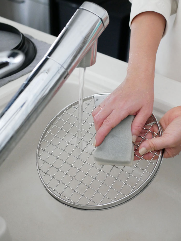 焦げ付きにくい線径1.6mmの極太網を採用。食材が網にくっつくストレスなく、おいしく焼き上げるこだわりの焼き網です。