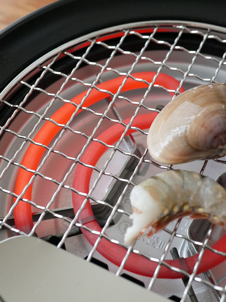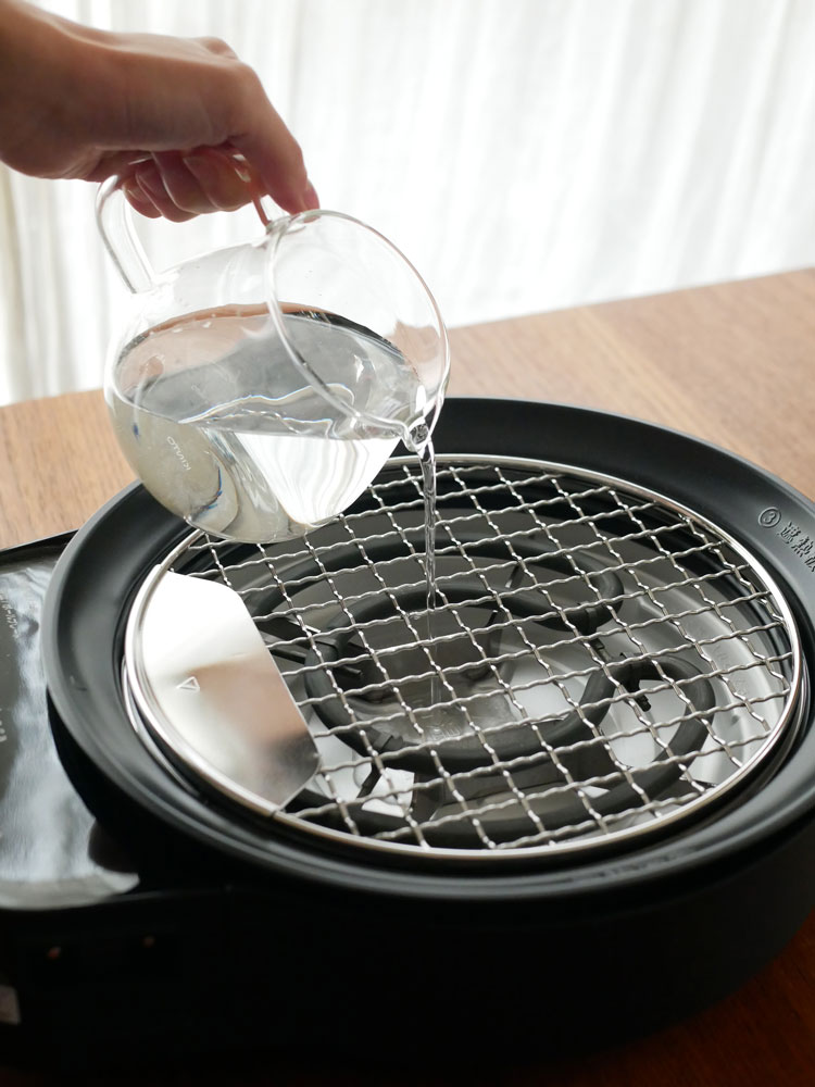 さらに〈焼き網〉使用時には、油受けに水をはることで煙を抑える減煙構造により、煙やにおいを気にせず存分に食事を楽しめます。