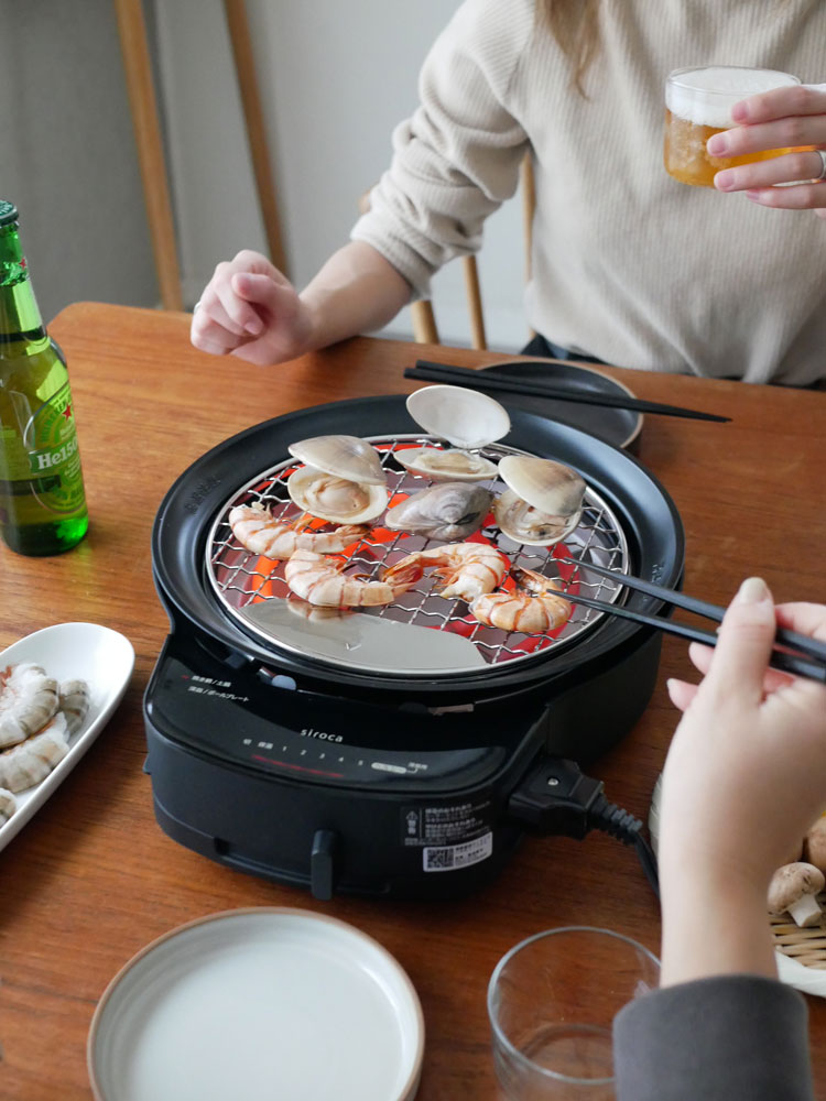 それに通常のプレートだと温度が下がると煙がブワッと出るので、お魚やお肉をダイニングで焼くのはニオイが気になります。